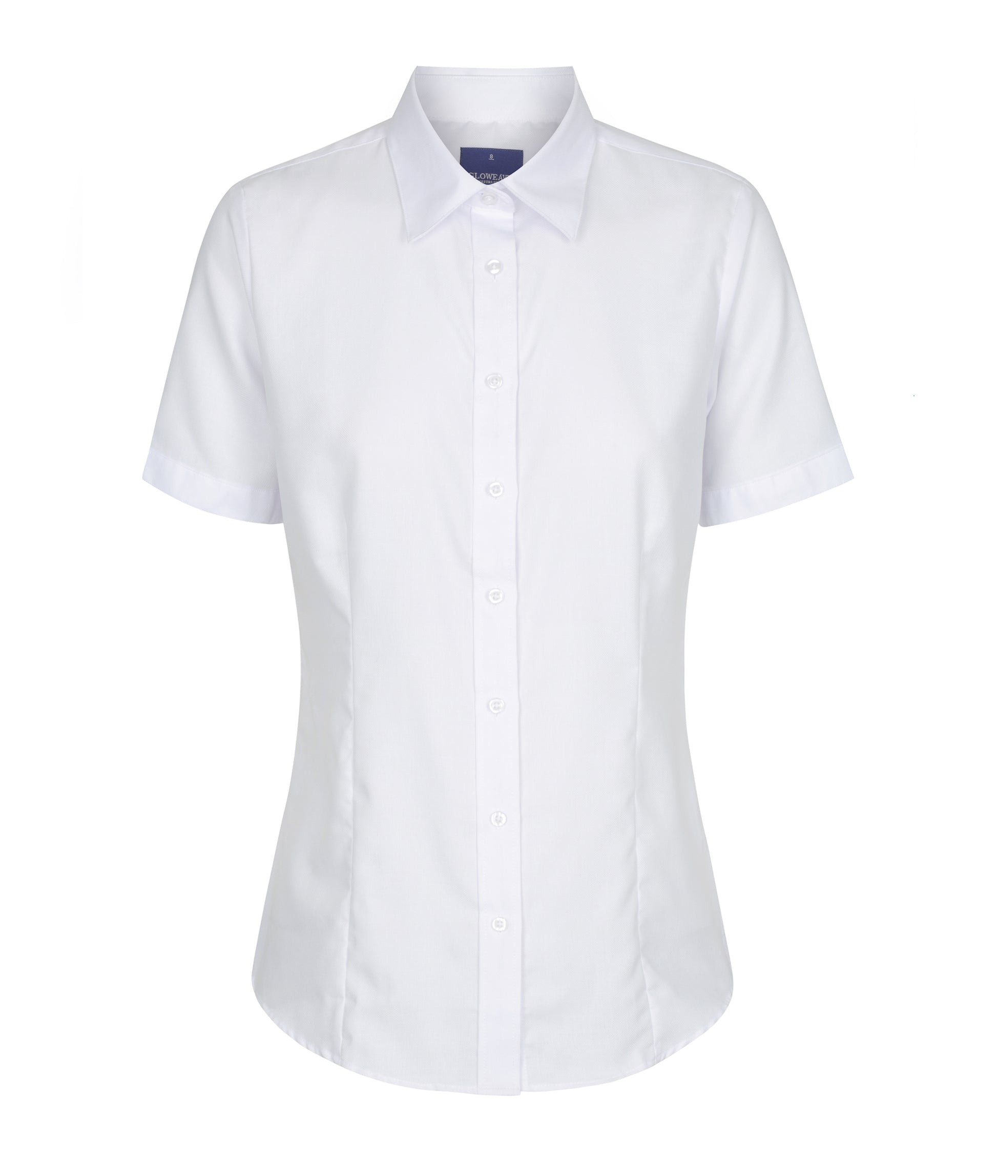 Womens Short Sleeve Ultimate White Shirt, Career Slim Fit, Placket Front, Front & Back Darts, Hidden Modesty Button, Classic Collar